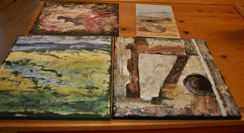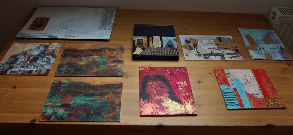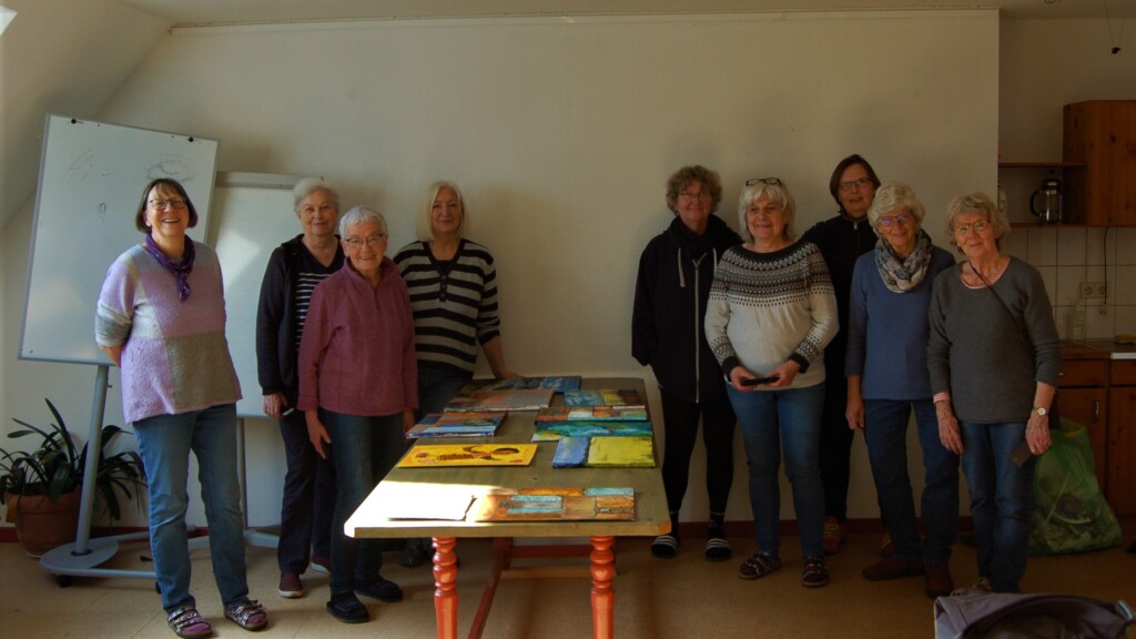 Vom 3. bis 6. März haben 10 Mitglieder des TKRs an einem Workshop in Loopstedt teilgenommen. Diesmal wurde unter der Anleitung von Karin Matthiesen das Thema “Oberfläche / Struktur” bearbeitet. Dabei kamen z. B. Marmormehl, Champagner Kreide, Lehm und noch andere Materialien in Verbindung mit Acrylbinder zum Einsatz. Um die Trockenzeiten der Spachtelbilder zu überbrücken, bekamen wir von Annette Hollwegs noch eine Einweisung zum Thema Fototransfer. Hier sind einige Eindrücke der entstandenen Werke!